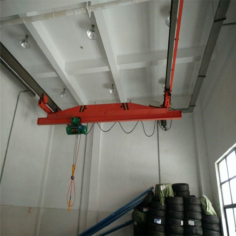 電動單梁懸掛起重機由鋼板與工字鋼組焊成的主梁、端梁、電動葫蘆及電動跑車組成,懸掛在廠房上部的工字梁軌道上,懸臂長度0.5~1m,電動葫蘆沿主梁工字鋼下翼緣運行,完成物品的吊運工作,具有結構輕巧、安裝維護方便等特點,廣泛應用于生產車間、倉庫及貨場等場所。工作級別為A3-A5。